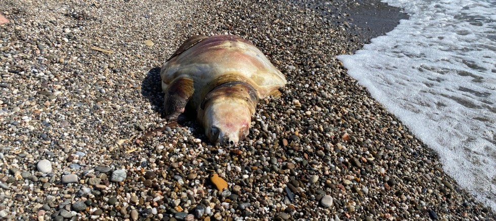Gazipaşa’daki Selinus Sahili'nde Caretta caretta cinsi deniz kaplumbağası ölüsü kıyıya vurdu. Sahile ne zaman vurduğu ve nasıl öldüğü bilinmeyen yaklaşık 60 santimetre boyunda ve yaklaşık 30 kilo ağırlığındaki kaplumbağa bulunduğu yerden kaldırılmayı bekliyor. Sahilde gezen vatandaşlar şaşkınlık içerisinde kaplumbağanın kaldırılmasını bekliyor.
