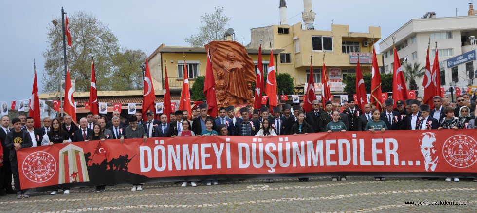 Gazipaşa'daki 18 Mart törenleri Cumhuriyet Meydanı'ndaki Atatürk Anıtı'na çelenk sunulmasıyla başladı. Törene Kaymakam Selami Korkutata, Garnizon Komutanı Kara pilot Yüzbaşı Ümit fidan, Belediye Başkan Yardımcısı Selçuk Özdemir, İlçe Emniyet Müdürü Mehmet Ali Kayhan, İlçe Jandarma Komutanı Üsteğmen Onur Yetim, AK Parti İlçe Başkanı Ramis Yiğit, Cumhuriyet Halk Partisi İlçe Başkanı Fahri Oğuz, İyi Parti İlçe Başkanı Mehmet Ali Çomruk. Kamu kurum amirleri, gaziler, vatandaşlar ve öğrenciler katıldı. Saygı duruşu ve İstiklal Marşı okundu.