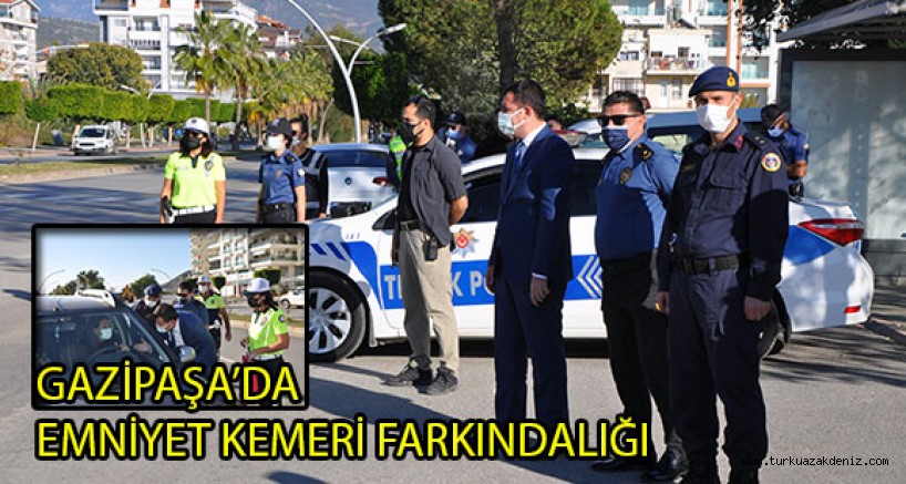 Kampanya kapsamında Gazipaşa’daki 'Emniyet Kemeri Uygulaması' ilçenin trafik akışının yoğun olduğu Pazarcı Mahallesi Uğur Mumcu Caddesi üzerindeki Deniz yolunda yapıldı. Kampanyaya Gazipaşa Kaymakamı Orhan Altun, İlçe Emniyet Müdürü Kamil Cıngıl, İlçe Jandarma komutanı Üsteğmen Ökkeş Yılmaz’ın katılımıyla gerçekleşti. Uygulamada emniyet kemerinin önemine dikkat çekildi. Farkındalık kapsamında yapılan yol uygulamasında durdurulan sürücülere emniyet kemerinin önemine değinilerek hediyeler verildi.