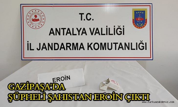 Olay, dün 17.30 sıralarında Güney Mahallesinde jandarmanın devriye faaliyetinde meydana geldi. Gazipaşa İlçe Jandarma Komutanlığı ekipleri, şüpheli şahısların tespitini yapmak için çıkılan devriye faaliyeti gerçekleştirdi. Devriye atan Jandarma, şüpheli bir aracı durdurdu. Araç içerinde M.A. (22) şüpheli harekette bulunması nedeniyle yapılan üst aramasında, üzerinde de sigara paketinin içinde folyoya sarılı 3 gr Eroin bulundu. Olayla ilgili olarak Gazipaşa Nöbetçi Cumhuriyet savcısına bilgi verilerek alınan talimatlar doğrultusunda tahkikata başlandı. Şüpheli M.A. ifadesinin alınmasına müteakip serbest bırakıldı.