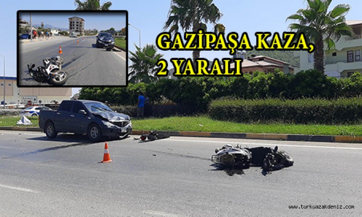 Olay, saat 14.00 sıralarında Beyobası Mahallesi D400 Karayolu Sanayi kavşağında meydan geldi. Beyobası Mahallesi istikametinden Sanayi Kavşağı'na girmek üzere olan Ayşe Bahar Aydınlıoğlu hâkimiyetindeki 07 UT 373 plakalı motosiklet, Gazipaşa istikametinden Alanya istikametine seyir halinde olan Erhan Boz hâkimiyetindeki 07 ALN 915 plakalı otomobil çarpıştı. Çarpışmanın etkisi ile motosiklet yaklaşık 20 metre sürüklenip durdu. Motosiklet sürücüsü Ayşe Bahar Aydınlıoğlu ve motosiklette yolcu olarak bulunan Leyla Bahar Aydınlıoğlu yaralandı. Çevredekilerin ihbarı üzerine olay yerine polis ve sağlık ekipleri sevk edildi. Yaralılara ilk müdahale olay yerinde yapıldı. Gazipaşa Devlet Hastanesine götürülen yaralılar tedaviye alındı.